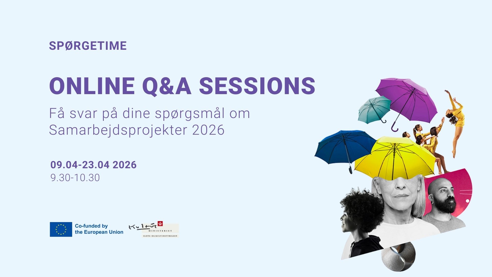 Hver anden torsdag frem til ansøgningsfristen har du mulighed for at få svar på konkrete spørgsmål, når vi holder online Q&A-sessions om Creative Europes pulje Samarbejdsprojekter.